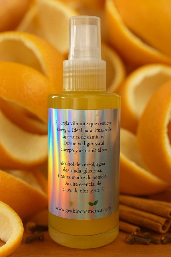 Con tinturas intencionadas, y aceites esenciales de Pomelo, Canela, Romero y Clavo de olor.